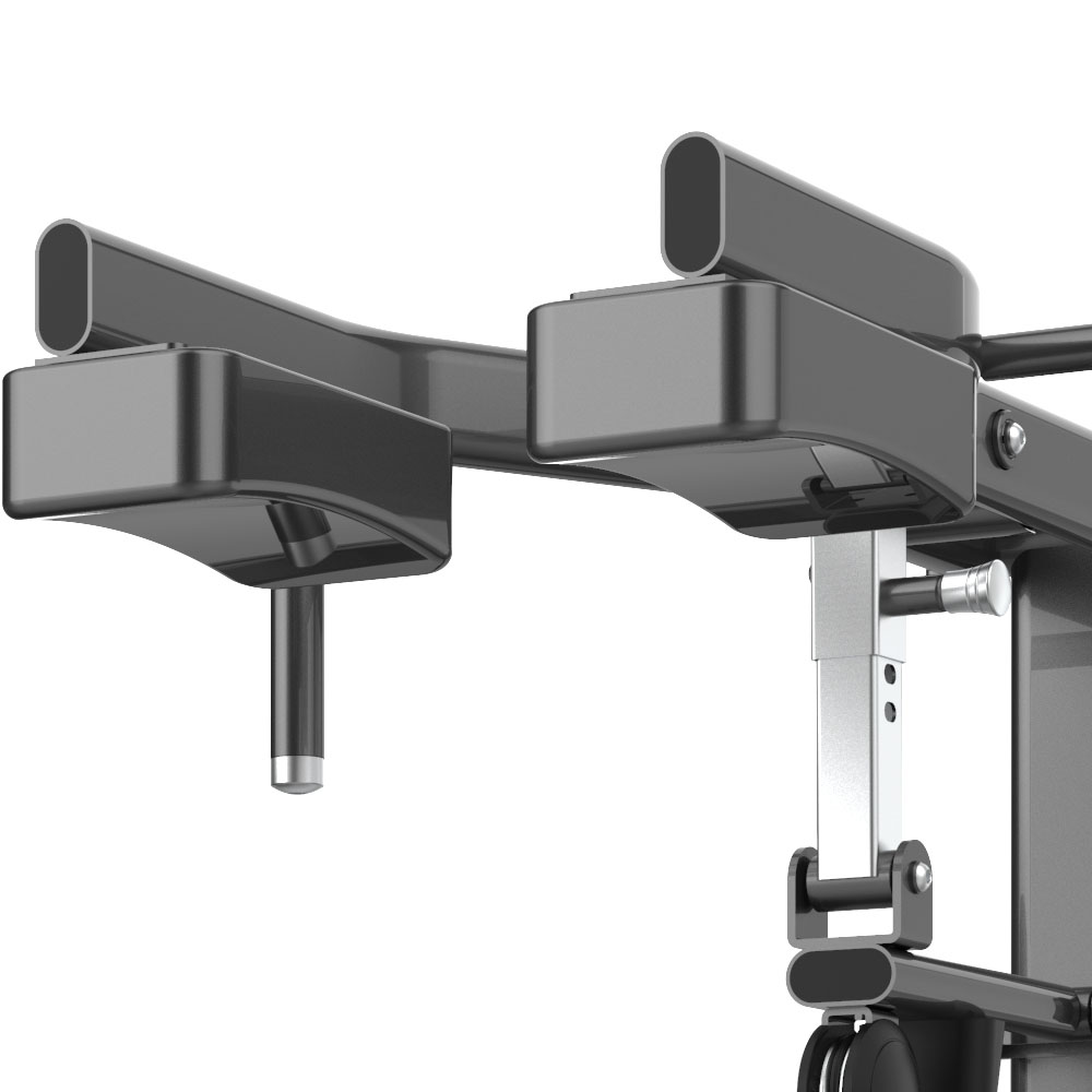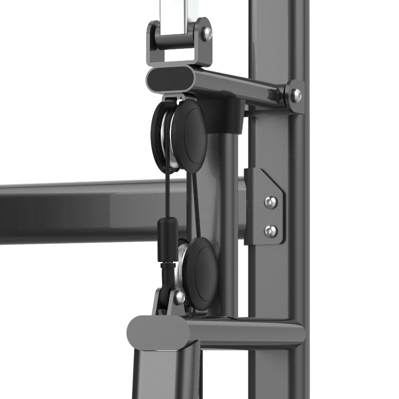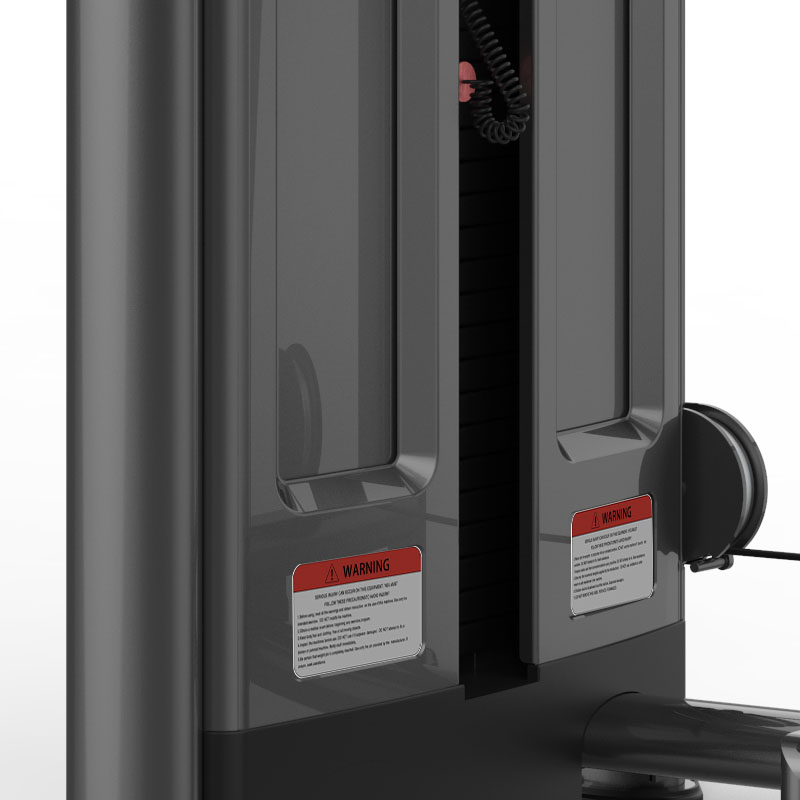 The M7PRO Line features Dual-Pulley design and metal plate enclosure. Each machine has a rack for towel and water bottle holder. The range is constructed from 57*115*3MM elliptical section and design is based around good Kinesiology motion. The machines adopt stainless fasteners, an excellent powder coat paint finish and superior welding. These features combine to produce a beautiful and attractive range. (M7PRO series used the weight cover in Aluminium Alloy material, which is more durable and looks more elegant.)