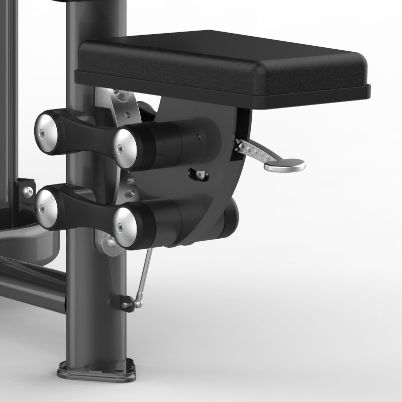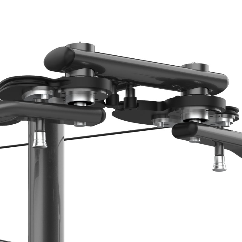 The M7PRO Line features Dual-Pulley design and metal plate enclosure. Each machine has a rack for towel and water bottle holder. The range is constructed from 57*115*3MM elliptical section and design is based around good Kinesiology motion. The machines adopt stainless fasteners, an excellent powder coat paint finish and superior welding. These features combine to produce a beautiful and attractive range. (M7PRO series used the weight cover in Aluminium Alloy material, which is more durable and looks more elegant.)