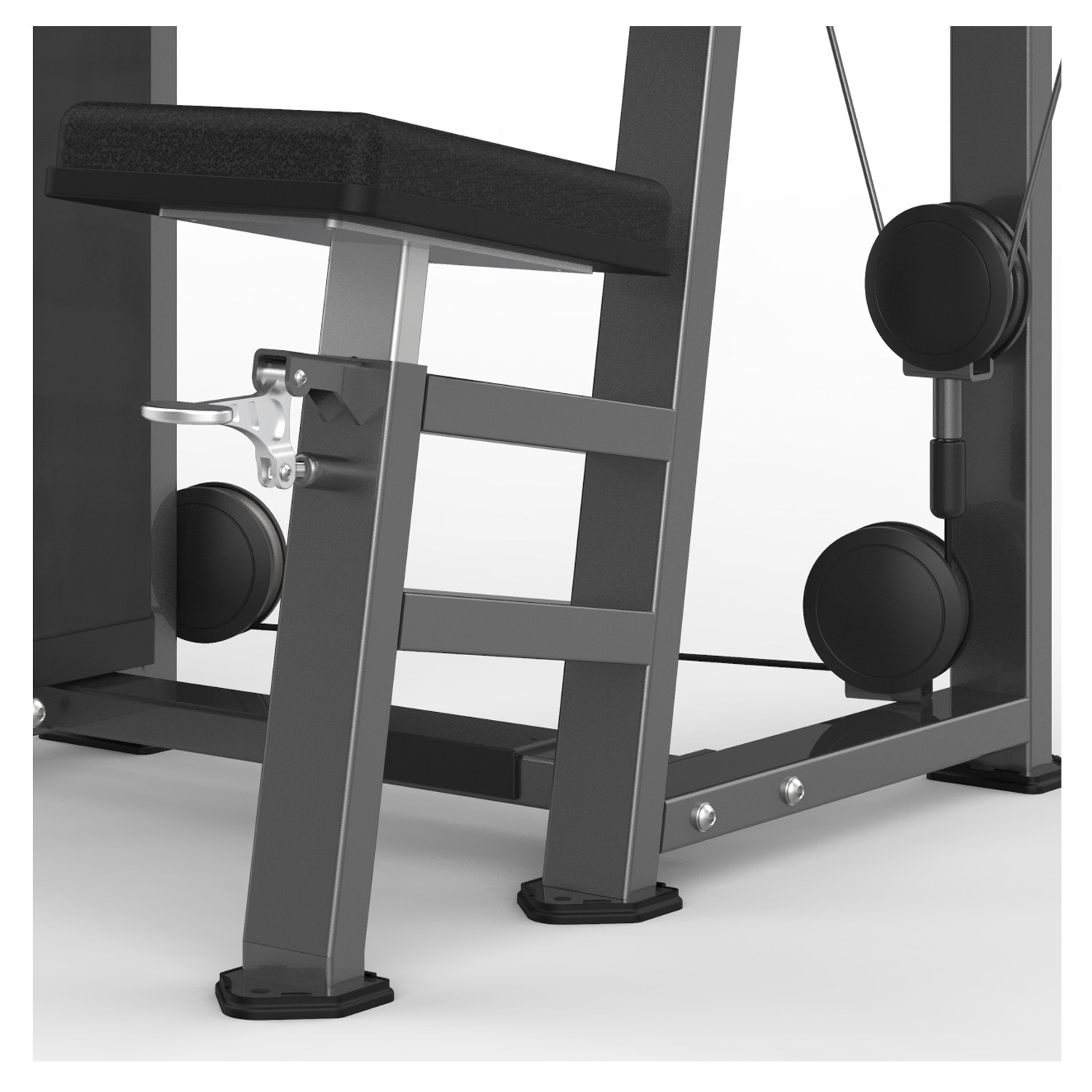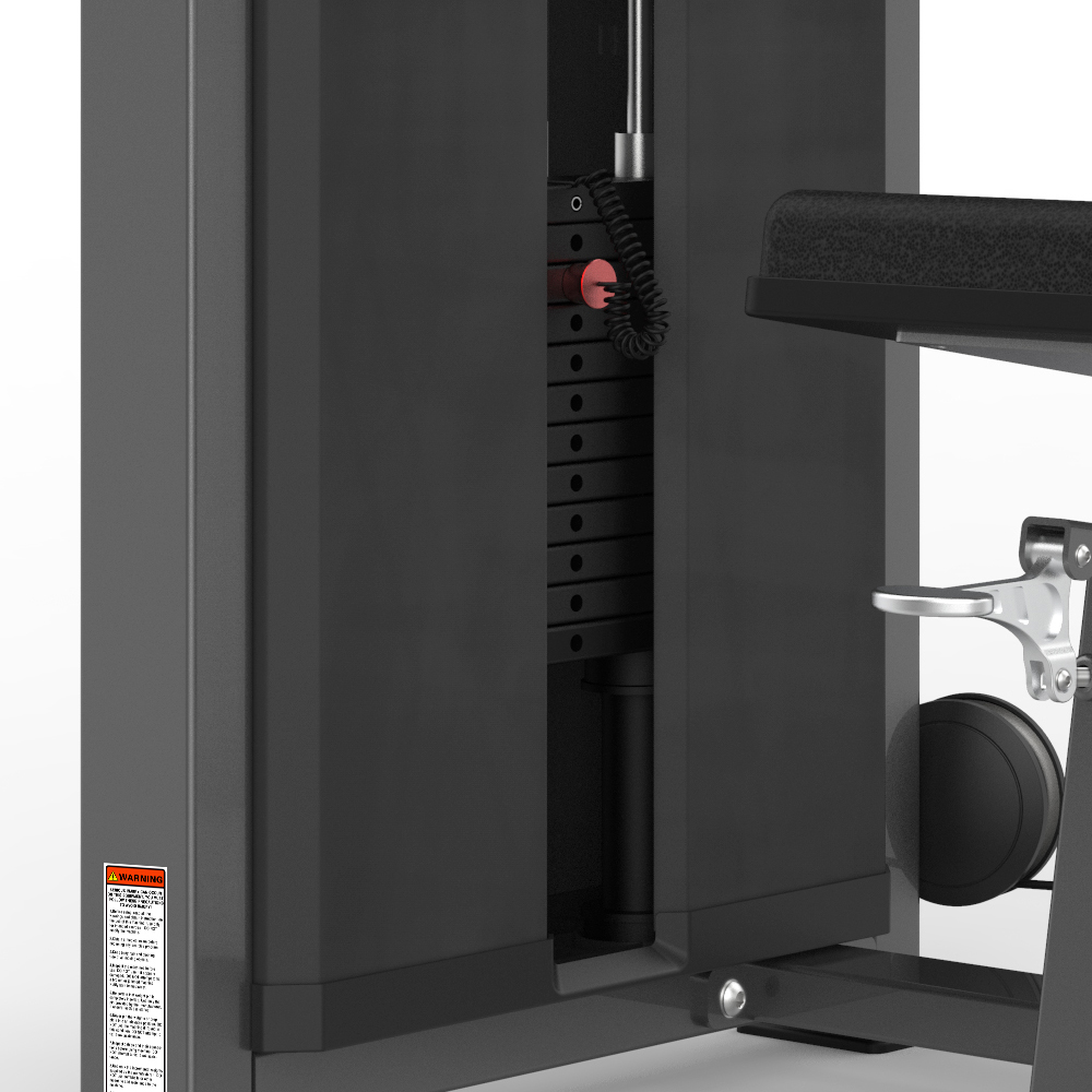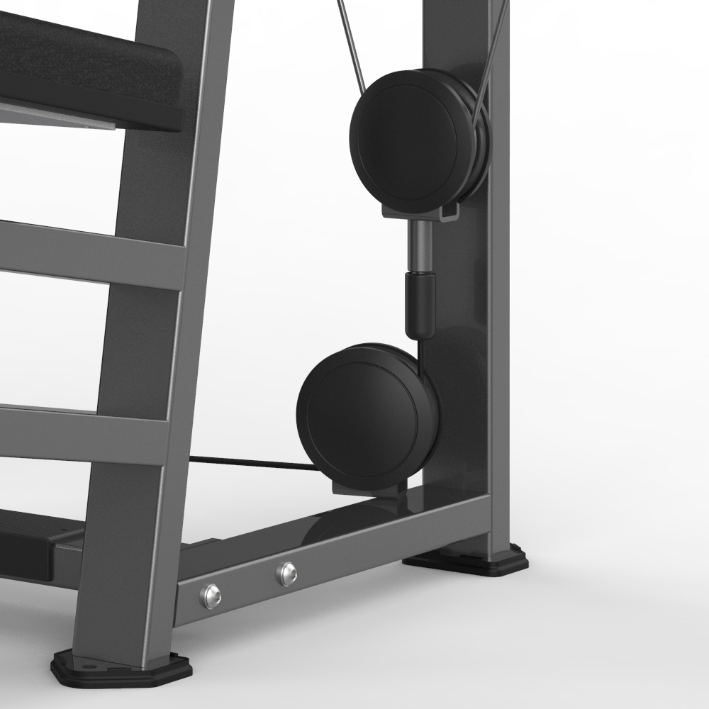 Selecting the correct weight is a hassle-free experience thanks to the new weight stack pin with pre-tensioned cable that doesn't jam between the weight stacks. The 4.5S kg/lbs integrated plate enables to increase the load more gradually.