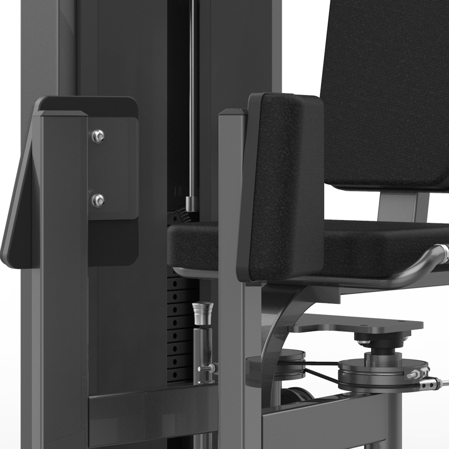 Easier Load Selection Selecting the correct weight is a hassle-free experience thanks to the new weight stack pin with pre-tensioned cable that doesn't jam between the weight stacks. The 4.5S kg/lbs integrated plate enables to increase the load more gradually.
