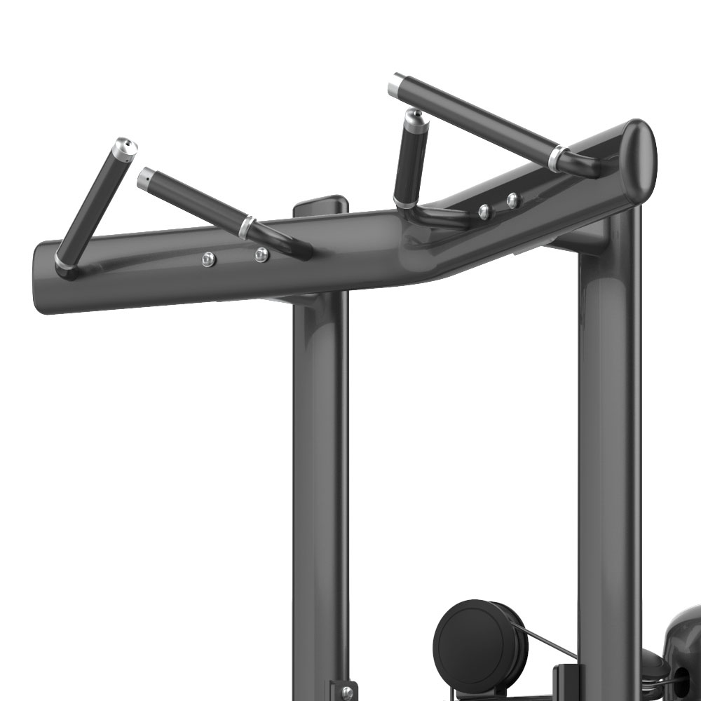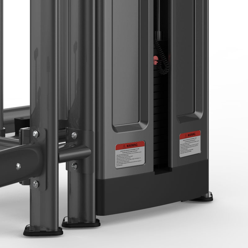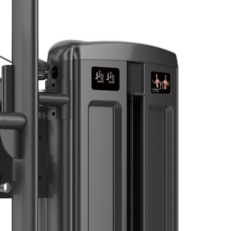 The M7PRO Line features Dual-Pulley design and metal plate enclosure. Each machine has a rack for towel and water bottle holder. The range is constructed from 57*115*3MM elliptical section and design is based around good Kinesiology motion. The machines adopt stainless fasteners, an excellent powder coat paint finish and superior welding. These features combine to produce a beautiful and attractive range. (M7PRO series used the weight cover in Aluminium Alloy material, which is more durable and looks more elegant.)