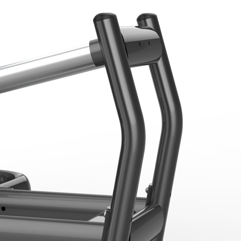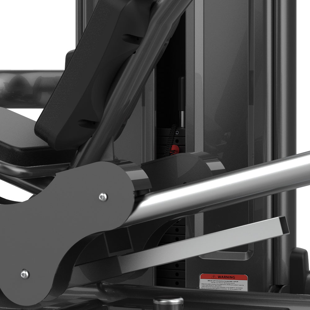 The M7PRO Line features Dual-Pulley design and metal plate enclosure. Each machine has a rack for towel and water bottle holder. The range is constructed from 57*115*3MM elliptical section and design is based around good Kinesiology motion. The machines adopt stainless fasteners, an excellent powder coat paint finish and superior welding. These features combine to produce a beautiful and attractive range. (M7PRO series used the weight cover in Aluminium Alloy material, which is more durable and looks more elegant.)