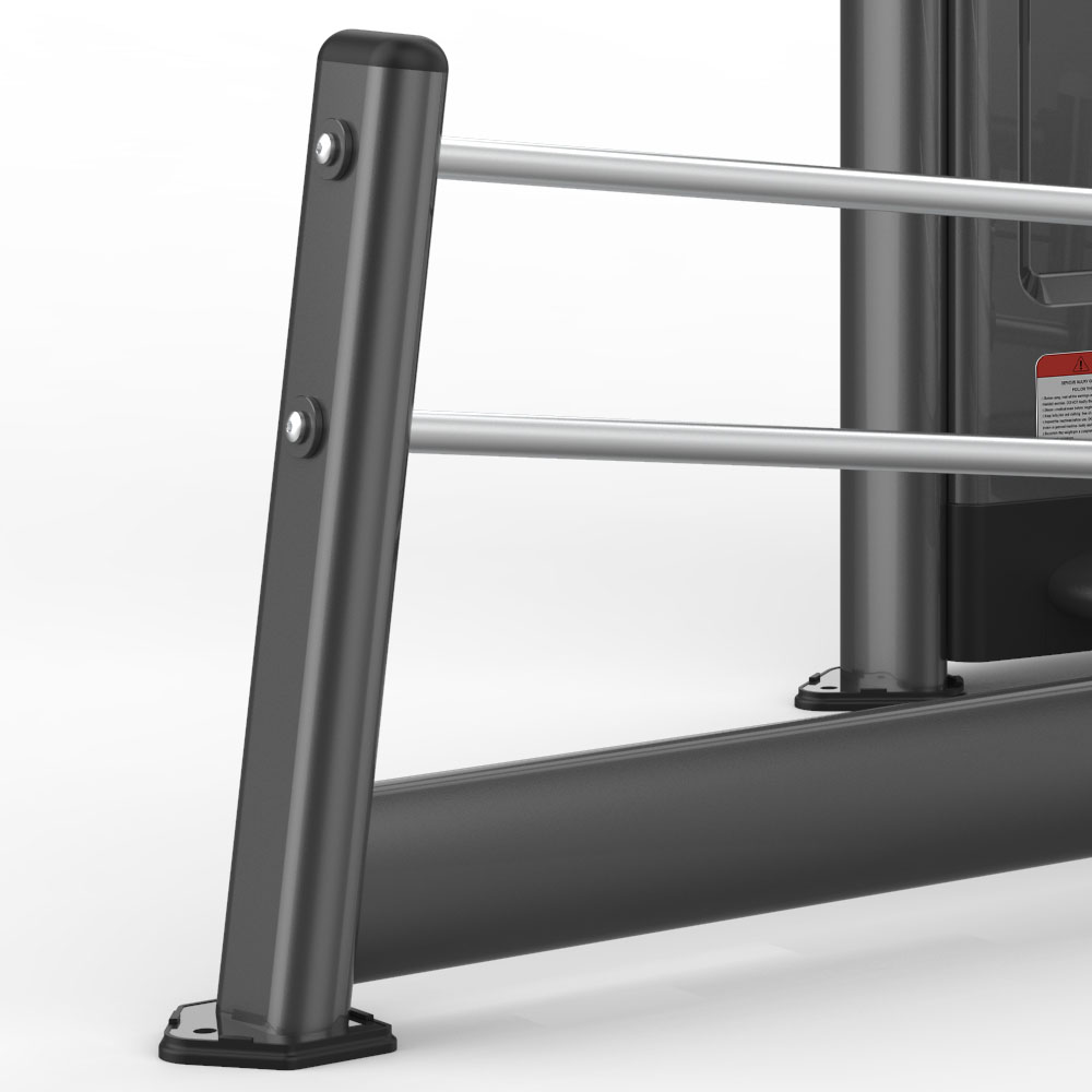 The M7PRO Line features Dual-Pulley design and metal plate enclosure. Each machine has a rack for towel and water bottle holder. The range is constructed from 57*115*3MM elliptical section and design is based around good Kinesiology motion. The machines adopt stainless fasteners, an excellent powder coat paint finish and superior welding. These features combine to produce a beautiful and attractive range. (M7PRO series used the weight cover in Aluminium Alloy material, which is more durable and looks more elegant.)
